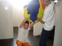 As crianças do Programa Lotação Esgotada vão ao delírio quando a mascote da Copa do Mundo de Futsal da Fifa entra em quadra nos intervalos das partidas para animar a torcida. O Parangolé corre, pula, brinca e dança. Enquanto isso, por debaixo dos 10kg da fantasia, o artista Weyder Moreira sofre de dores e cansaço. Na última segunda-feira, a torcida que foi assistir ao jogo Cuba x Japão no Ginásio Nilson Nelson, em Brasília, não pôde conhecer a mascote da Copa do Mundo. É que Weyder estava tentando se recuperar das fortes dores que estava sentido na lombar. - Tem uns dias que estou sentindo a lombar por causa do peso da roupa e também porque eu corro muito, danço, pulo... Aí deu uma torçãozinha na lombar, tive que tomar uma injeção para dor, e a minha perna travou. Acabei precisando descansar um pouco, mas entrei no intervalo do segundo jogo (Rússia x Ilhas Salomão) – conta Weyder que, apesar das dores, garante estar adorando fazer a mascote.